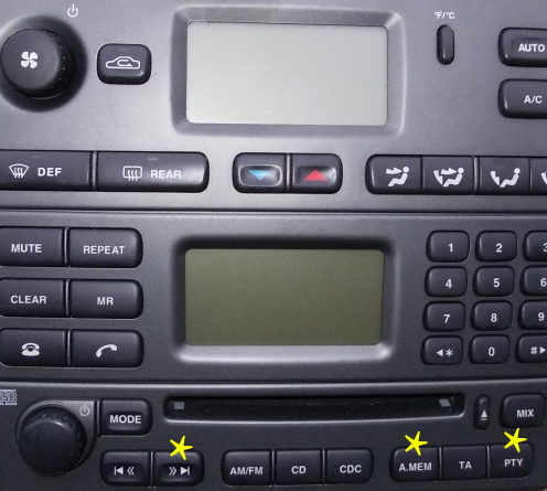 3) Просто зажать сразу 3 клавиши на магнитоле: A.MEM, PTY и ».