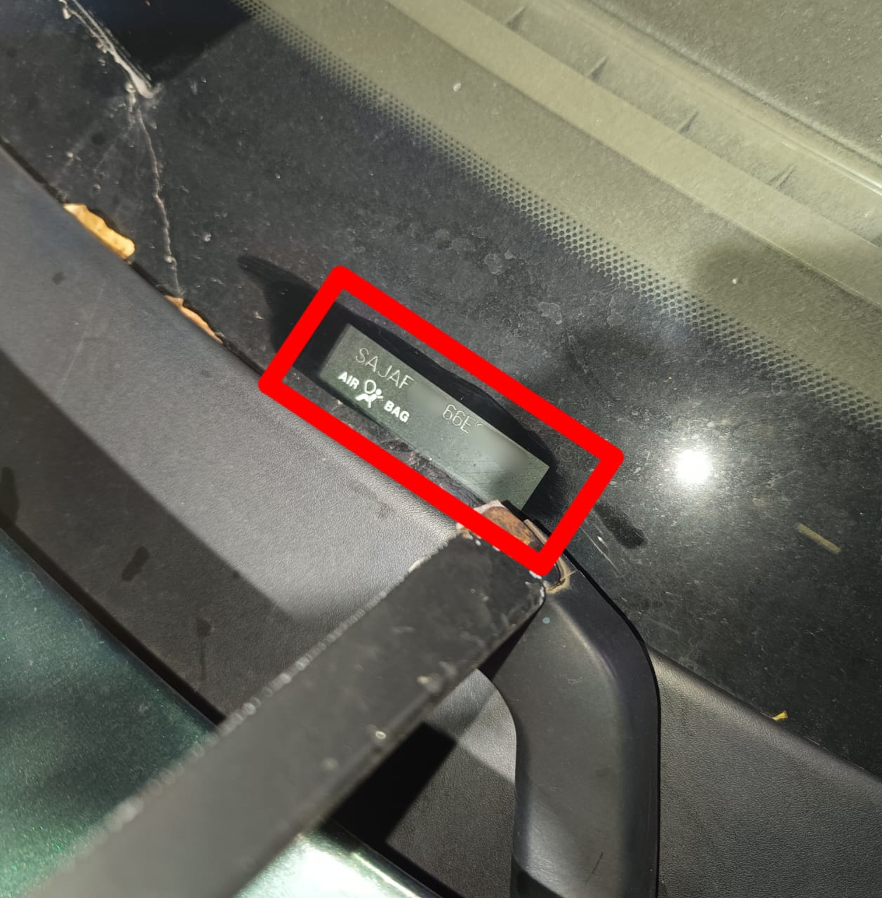 1)Под лобовым стеклом слева (со стороны водителя) закреплена табличка.