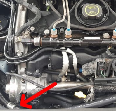 Номер набит спереди на двигателе, около места крепления ТНВД, под клапаном ЕГР.